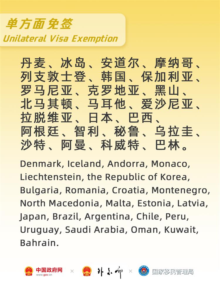 哪些国家能免签来中国?